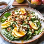 Start by preparing the candied walnuts first so they have time to cool. While they’re cooling, wash and dry the spinach, slice the apples, and crumble the Gorgonzola. Finally, whisk together your dressing and toss everything together just before serving for maximum freshness.