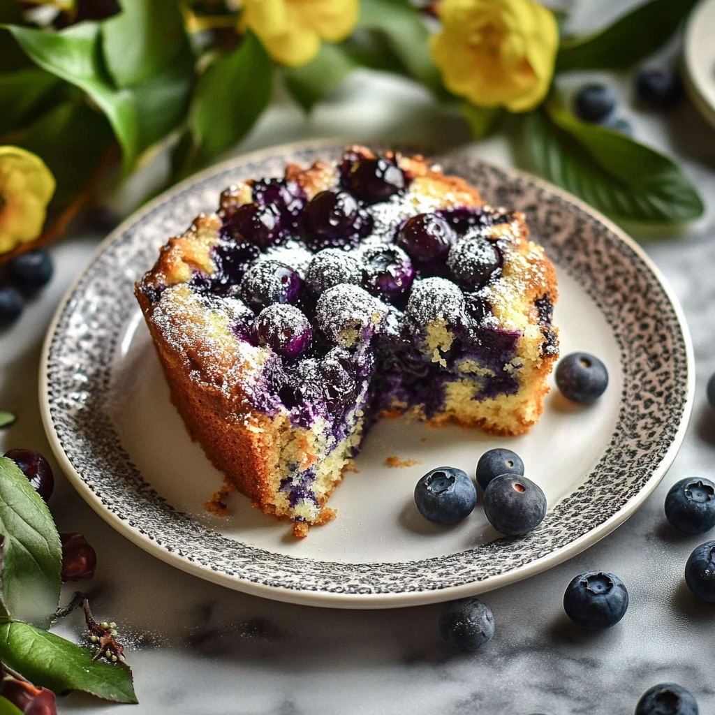 A moist and tender coffee cake bursting with fresh blueberries and a rich sour cream flavor, perfect for breakfast or an afternoon treat.