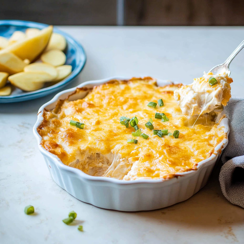 Once done baking, remove from the oven and garnish with chopped green onions. Serve warm with tortilla chips or veggies for dipping—enjoy your masterpiece!