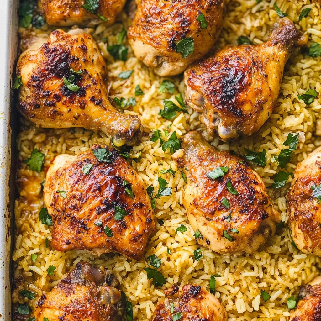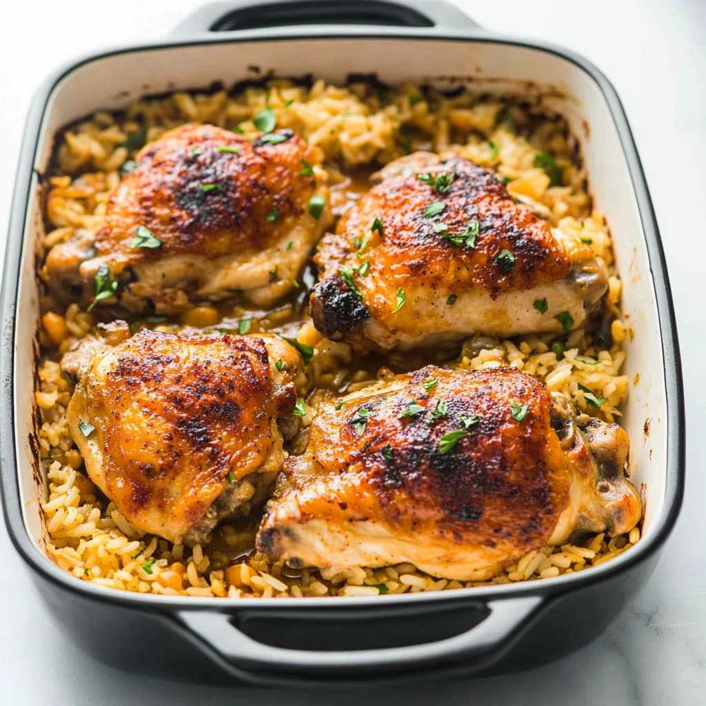 - The combination of juicy chicken thighs and flavorful rice creates a comforting dish that looks as good as it tastes.