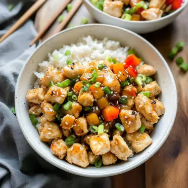Start by marinating the chicken for at least 30 minutes. While it’s soaking up flavor, cook your rice or quinoa to perfection. Once everything’s prepped, grill or sauté the chicken until golden brown and juicy before assembling your bowl.