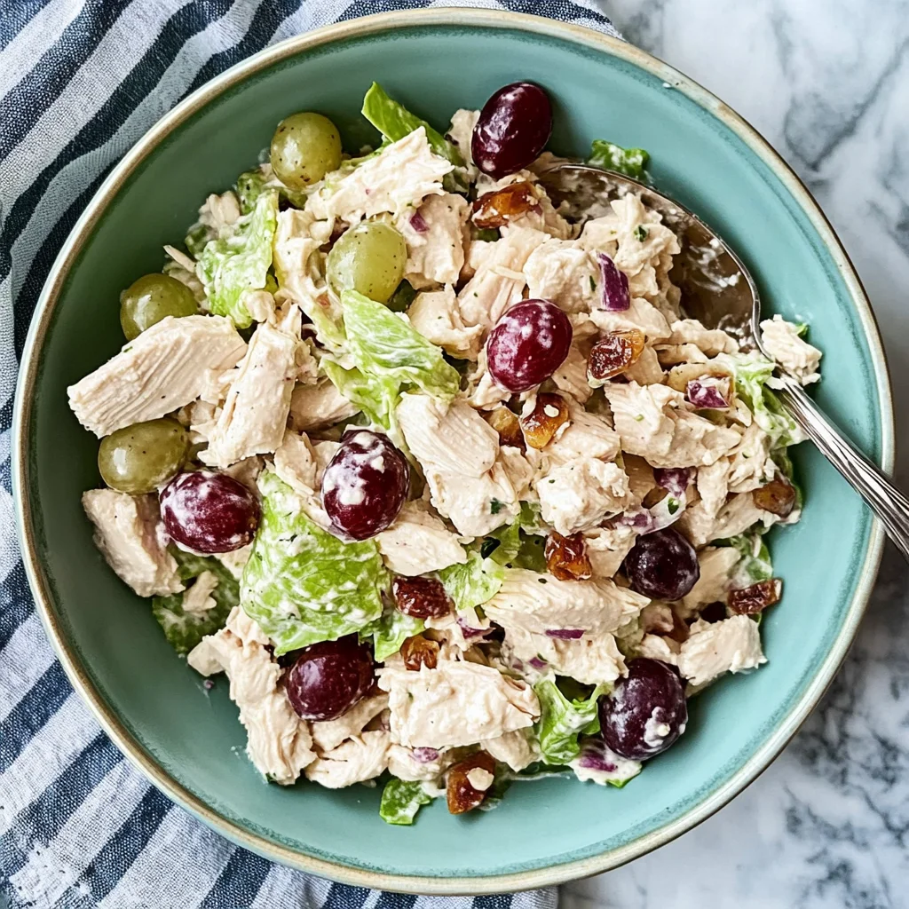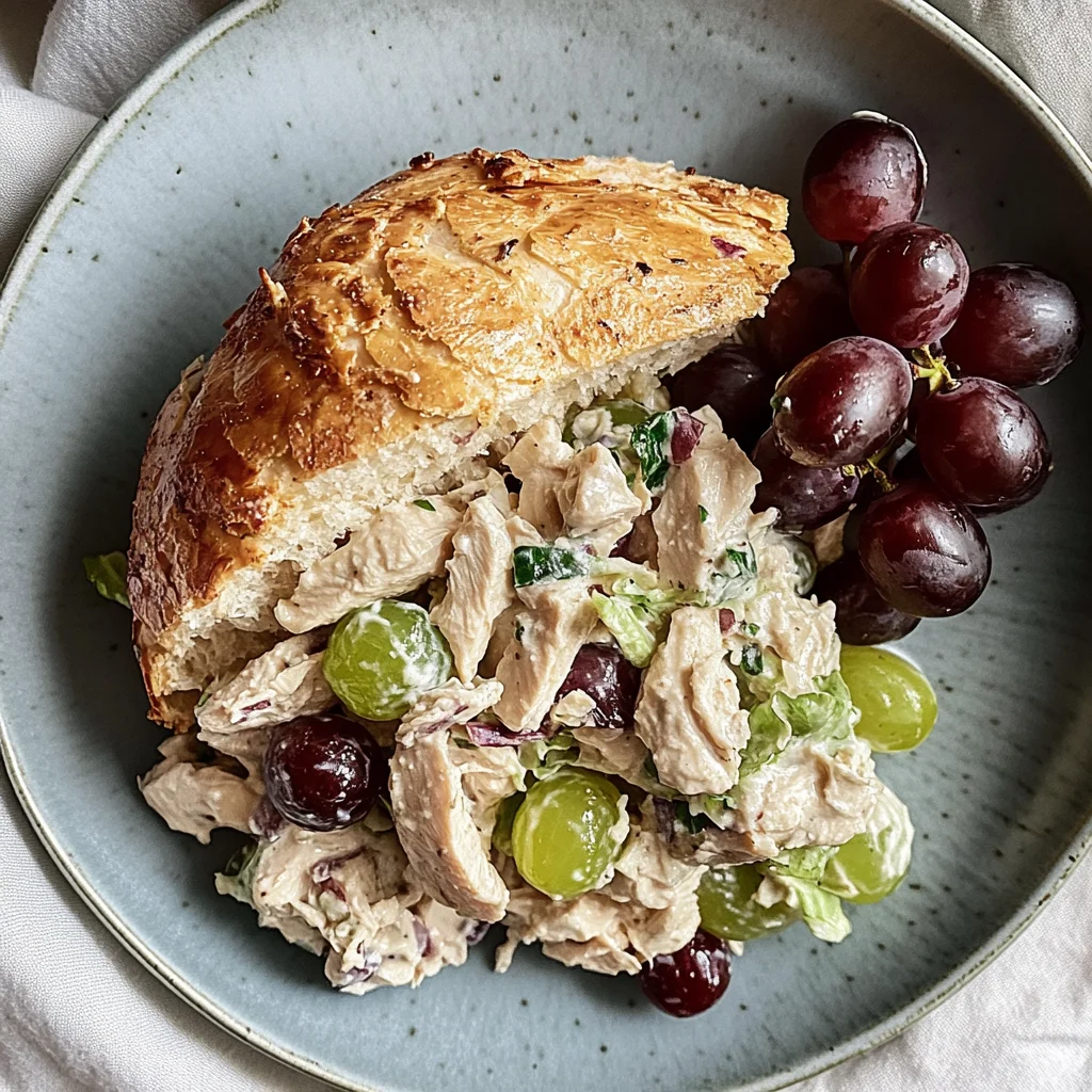 A refreshing and creamy chicken salad featuring tender chicken, sweet grapes, crunchy celery, and a tangy dressing, perfect for sandwiches or as a light meal.