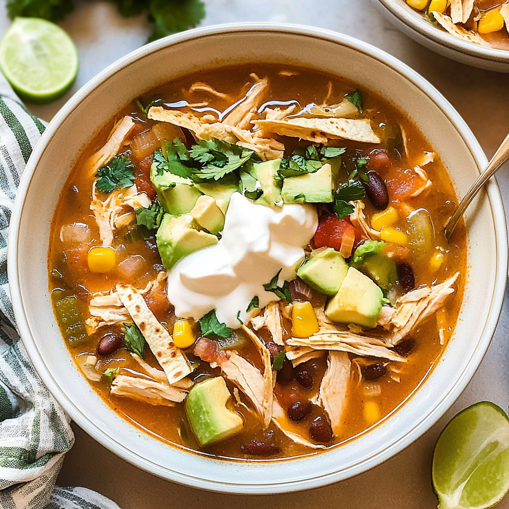 Feel free to swap out chicken for beans or tofu for a vegetarian twist. Spice up the soup with jalapeños or top it off with avocado slices for added creaminess.