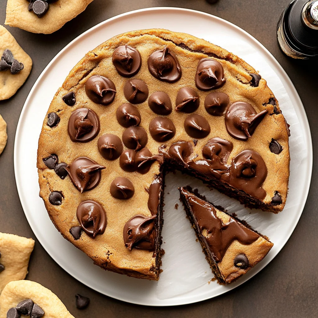 A deliciously soft and chewy chocolate chip cookie cake that combines the best of both worlds: a classic cookie flavor in a cake form. Perfect for celebrations or a sweet treat!