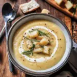 Creamy Potato Leek Soup is a comforting dish made from leeks, potatoes, cream, and broth. This soup offers a rich and velvety texture that is perfect for any season. The leeks provide a subtle sweetness, while the potatoes add heartiness. Often seasoned with herbs like thyme or parsley, this soup becomes a flavorful delight. Many people enjoy it as an appetizer or a main course paired with crusty bread. It’s an excellent option for those looking to indulge in homemade comfort food.