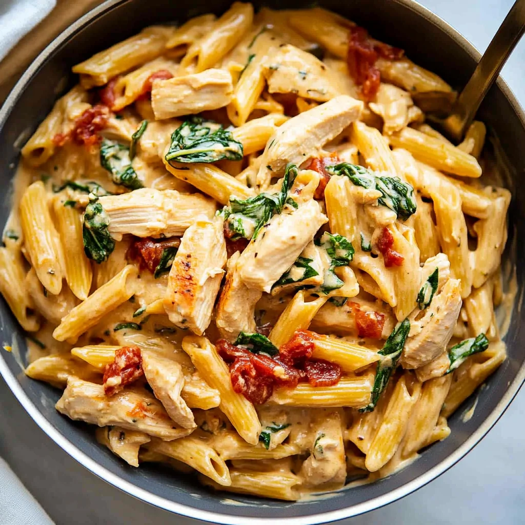 Imagine a bowl of creamy Tuscan chicken pasta, where tender chicken and velvety sauce mingle with fettuccine, creating an irresistible aroma that invites you to savor every bite. The vibrant colors of fresh spinach and sun-dried tomatoes dance through the rich, creamy sauce, promising a delightful feast for both the eyes and palate.