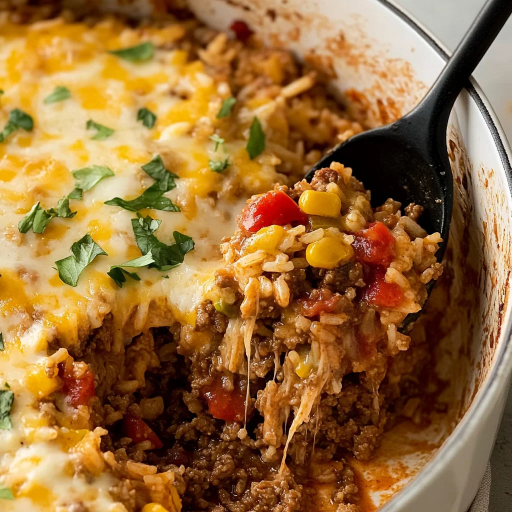 Ground beef and rice casserole is a comforting dish that fills your kitchen with a savory aroma. The combination of tender beef, fluffy rice, and melted cheese creates a satisfying texture that everyone loves.