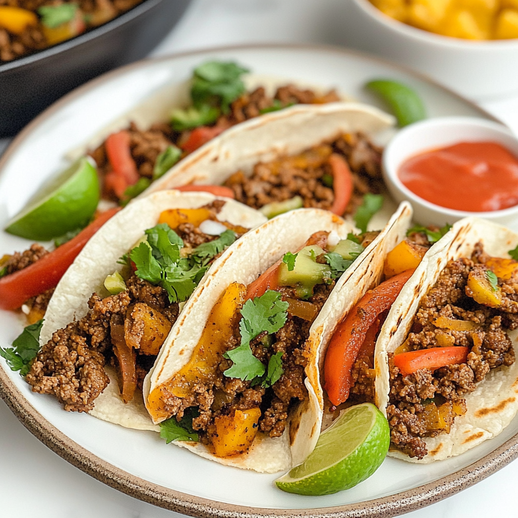 Ground Beef Fajitas are a vibrant and flavorful twist on a classic favorite, perfect for family dinners or casual gatherings. Featuring seasoned ground beef sautéed with colorful bell peppers and onions, all wrapped in warm tortillas, this dish guarantees satisfaction with every bite. Quick to prepare and endlessly customizable, these fajitas will impress your guests and keep them coming back for more.