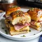 Experience the ultimate comfort food with these warm ham and Swiss sliders! Soft slider buns cradle layers of savory ham and melty Swiss cheese, all topped with a buttery herb drizzle that elevates every bite. Perfect for game days, family gatherings, or casual dinners, these sliders are easy to make and bursting with flavor. Serve them hot for a delightful treat that will be the star of any occasion.