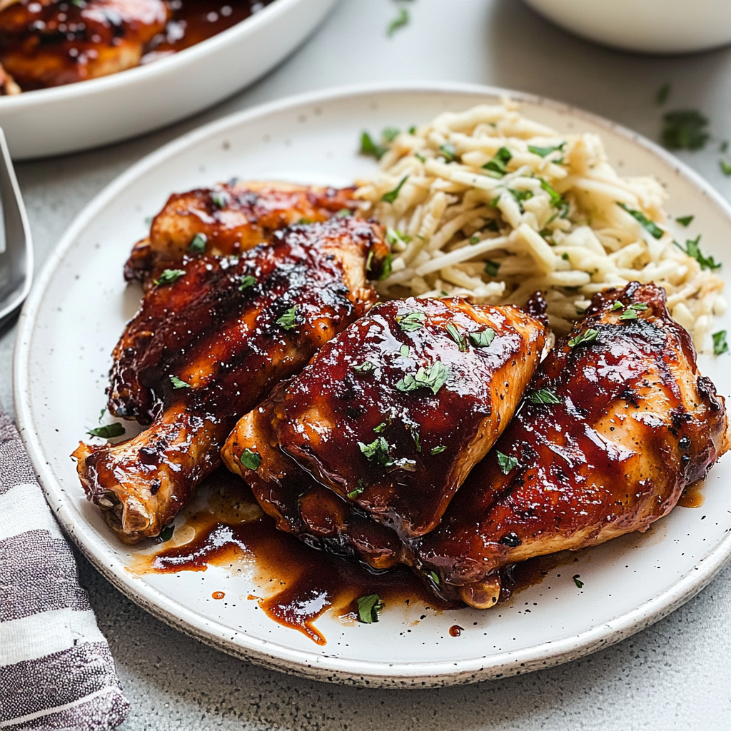 - Oven BBQ Chicken Thighs are juicy and flavorful, making them the ultimate comfort food