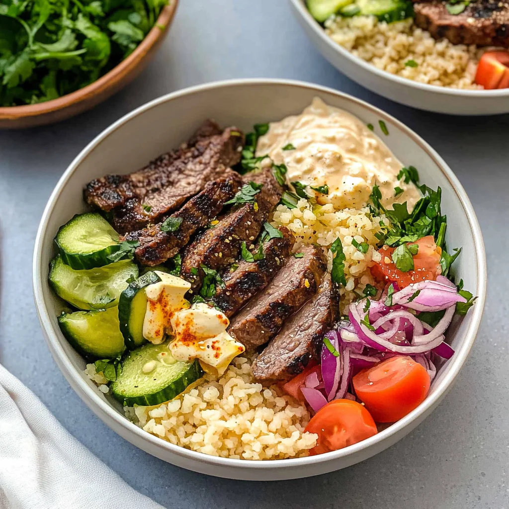 In summary, the Mediterranean Steak Bowl is a delicious and versatile dish that showcases vibrant flavors and fresh ingredients. By marinating steak and pairing it with grains and vegetables, you create a satisfying meal that everyone will love. Whether you opt for a traditional recipe or customize it to fit dietary needs, this bowl offers endless possibilities. Try making your own Mediterranean Steak Bowl today for a delightful culinary experience that brings together nutrition and taste in one vibrant meal.