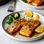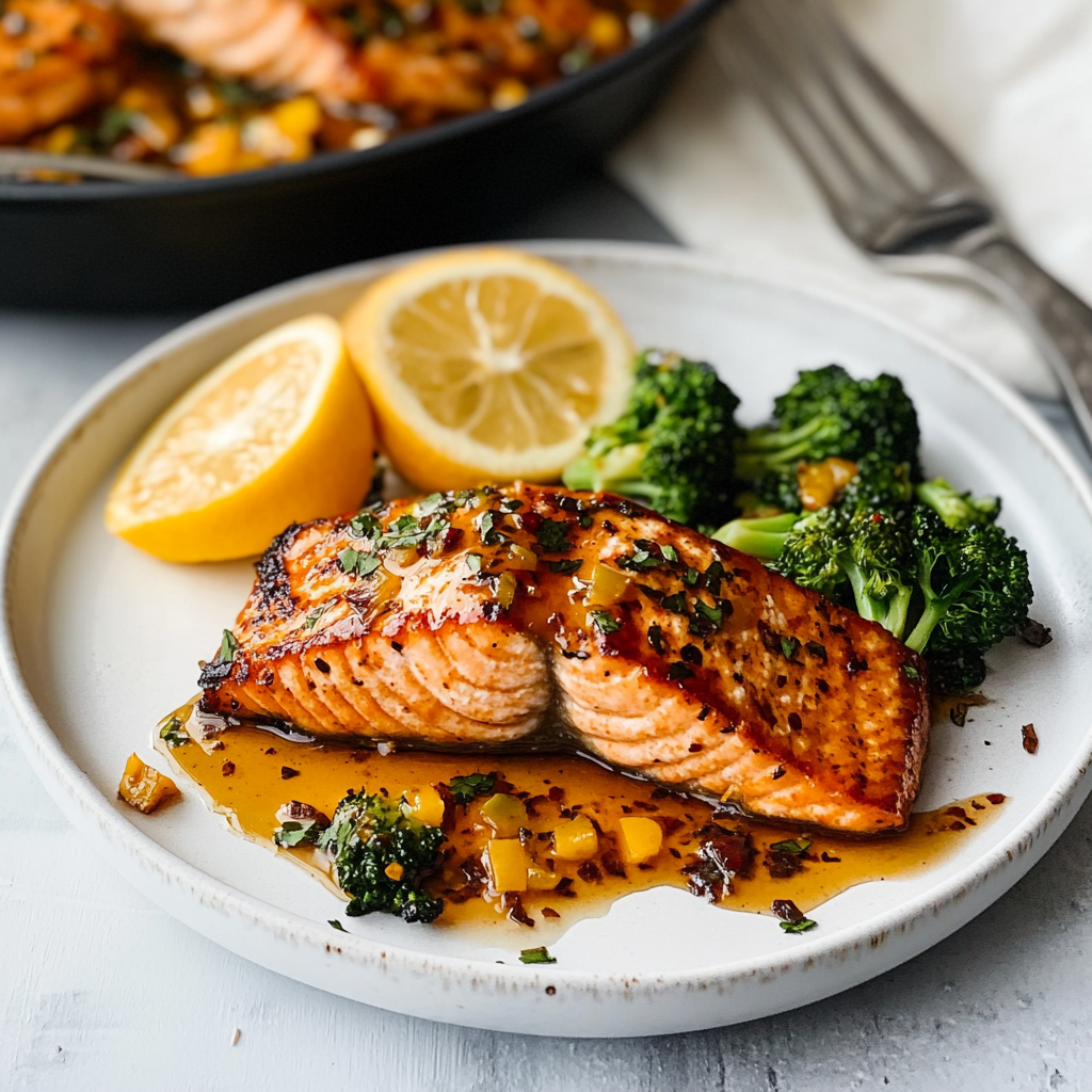Orange Glazed Salmon is a delectable dish that combines the rich flavor of salmon with a zesty orange glaze. This dish typically features fresh salmon fillets marinated in a mixture of orange juice, soy sauce, and honey. The result is a sweet and tangy glaze that perfectly complements the savory taste of the fish. Whether grilled, baked, or pan-seared, this recipe showcases the vibrant flavors of citrus while providing a healthy protein option. It’s an excellent choice for family dinners or special occasions, offering both elegance and ease.