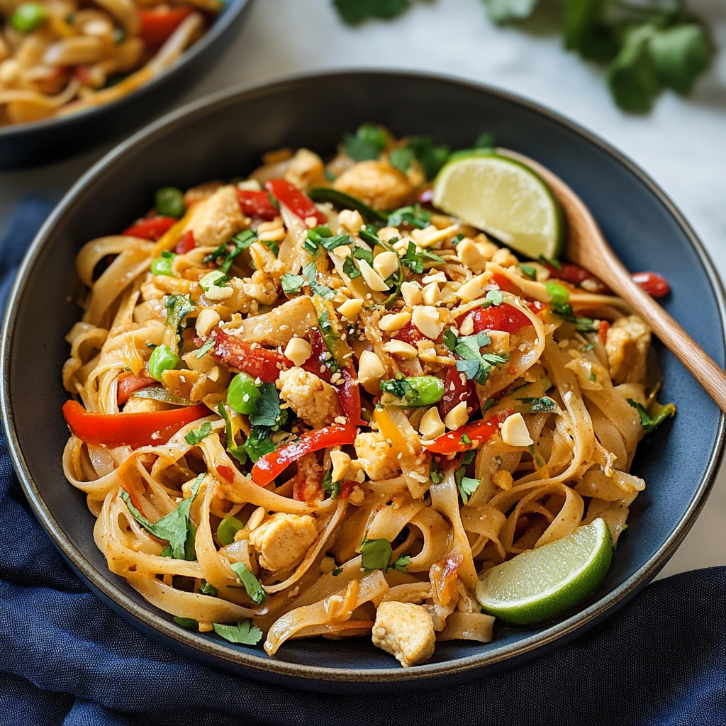 Pad Thai is a delightful stir-fried noodle dish that captures the essence of Thai street food in your kitchen. Featuring tender rice noodles, juicy chicken, crisp vegetables, and the signature tangy tamarind sauce, this recipe delivers restaurant-quality flavors in under 30 minutes. Perfect for quick weeknight dinners or special occasions, Pad Thai is sure to impress with its vibrant colors and unforgettable taste.