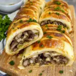 Philly Cheesesteak Stromboli is a mouthwatering fusion of tender ribeye steak, melted provolone cheese, and sautéed vegetables enveloped in warm, flaky pizza dough. Perfect for game nights or family gatherings, this easy-to-make dish combines comfort food with restaurant-quality flavors. With each slice, you’ll experience the delightful stretch of gooey cheese and savory filling that will have everyone coming back for more.