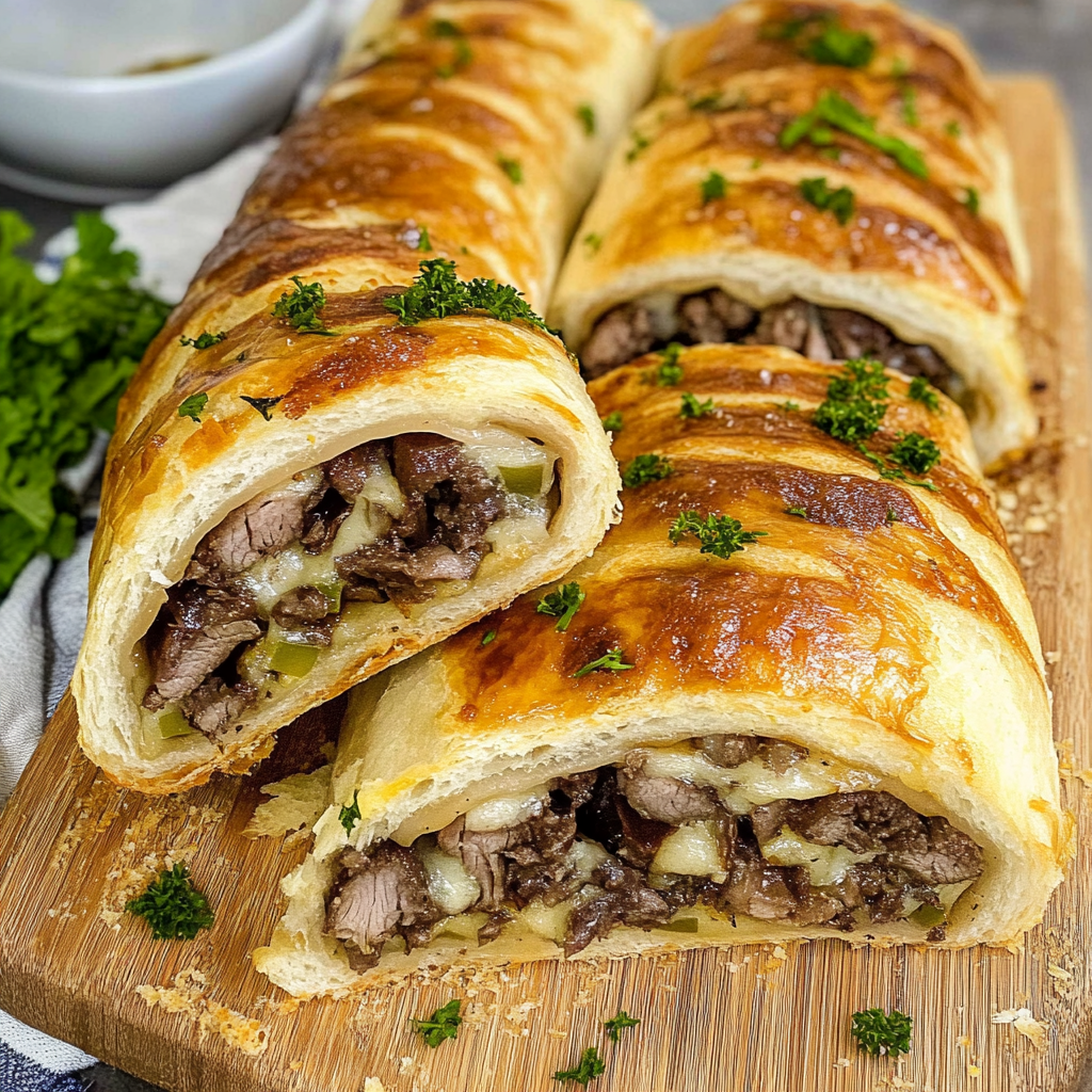 In summary, Philly Cheesesteak Stromboli is an exciting twist on traditional flavors that combines convenience with deliciousness. By using simple ingredients like thinly sliced beef, cheese, and pizza dough, you can create this delightful meal at home. Whether you’re preparing for a gathering or simply want to treat your family to something special, this recipe will not disappoint. Enjoy making your own Philly Cheesesteak Stromboli today!