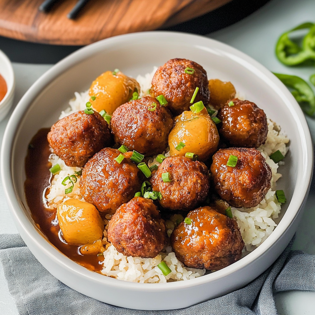 Pineapple meatballs are a delightful fusion dish combining savory meatballs with the sweet and tangy flavor of pineapple. Typically made from ground meat, breadcrumbs, and spices, these meatballs are cooked until tender and then tossed in a luscious pineapple sauce. This dish is perfect for parties or as a comforting family meal, showcasing the unique contrast of flavors that makes it so appealing. Whether served as an appetizer or main course, pineapple meatballs provide a tantalizing taste experience.