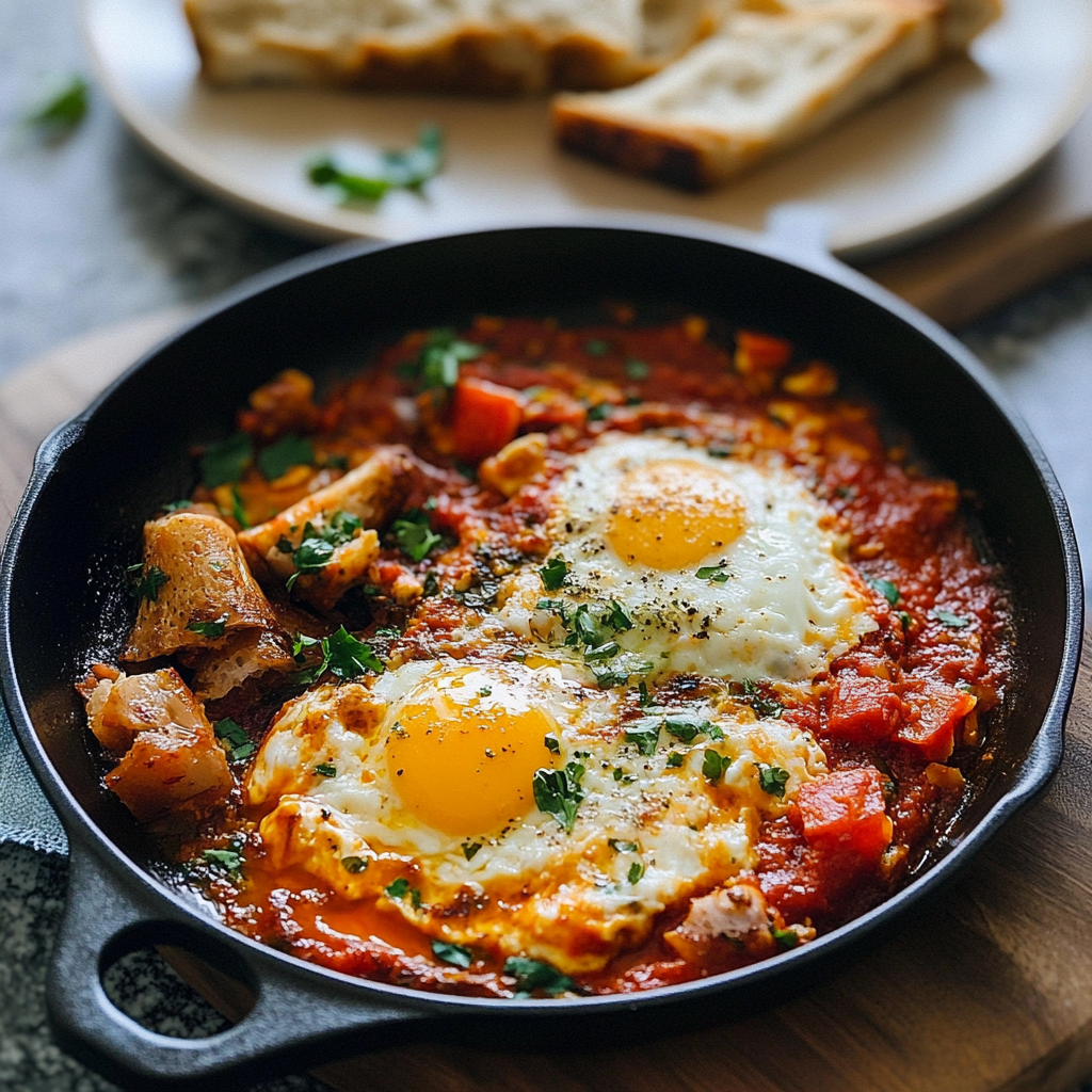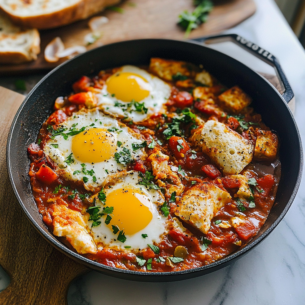 Shakshuka is a vibrant and hearty dish featuring poached eggs nestled in a spiced tomato sauce. This one-pan meal bursts with freshness and warmth, making it perfect for brunch or dinner. With its rich aromas and colorful presentation, Shakshuka elevates any meal to restaurant-quality status. Easy to prepare and endlessly customizable, this delightful dish is sure to become a favorite in your kitchen.