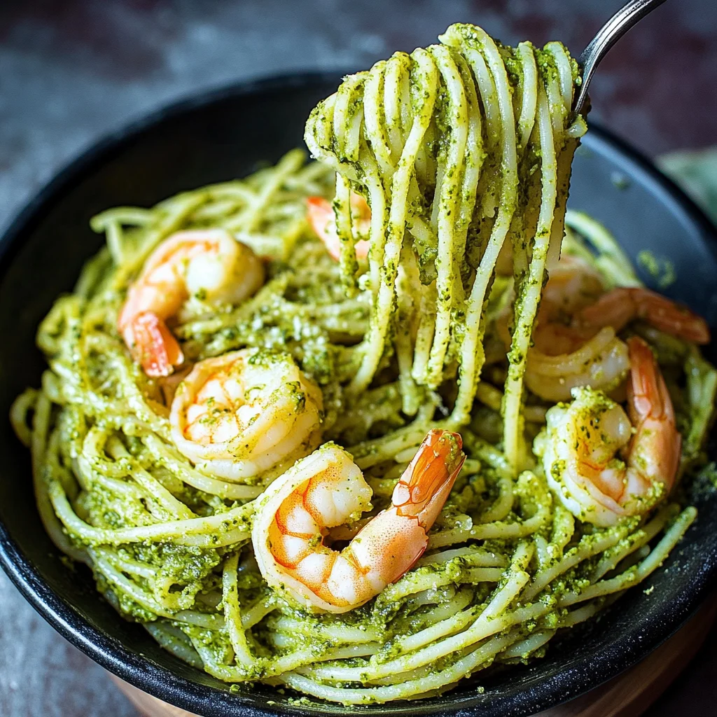 Feel free to customize your shrimp pesto pasta by swapping spaghetti for your favorite pasta shape, like penne or fettuccine. For added depth, consider incorporating sun-dried tomatoes or artichoke hearts into the mix. If you prefer a nut-free version, substitute the pine nuts with sunflower seeds. You can also adjust the heat level by increasing the red pepper flakes or adding a dash of lemon juice for a zesty twist. Embrace your creativity and make this dish truly yours! Now that you’ve got the basics down, let’s dive into some serving suggestions to elevate your meal further.
