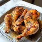 Transfer the seasoned chicken onto your prepared baking sheet, skin-side up. Pop it into your preheated oven and let it roast undisturbed for about 45-55 minutes until the skin is golden brown and juices run clear when pierced at the thickest part.