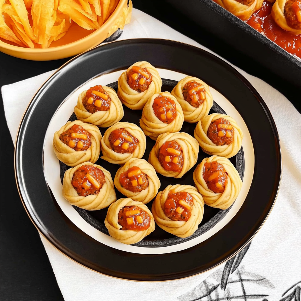 - Halloween Dinner Meatball Mummies are not just fun; they also pack a flavor punch with a hint of garlic and Italian herbs