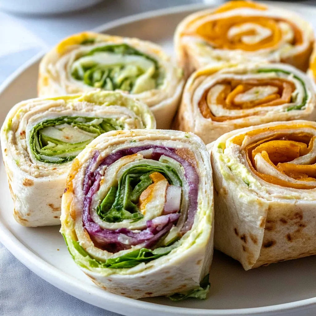 Once all wraps are assembled, grab a sharp knife and cut each wrap in half diagonally. This not only makes them easier to eat but also showcases the vibrant layers inside. You can serve them immediately or wrap them in parchment paper if you’re taking them on the go.