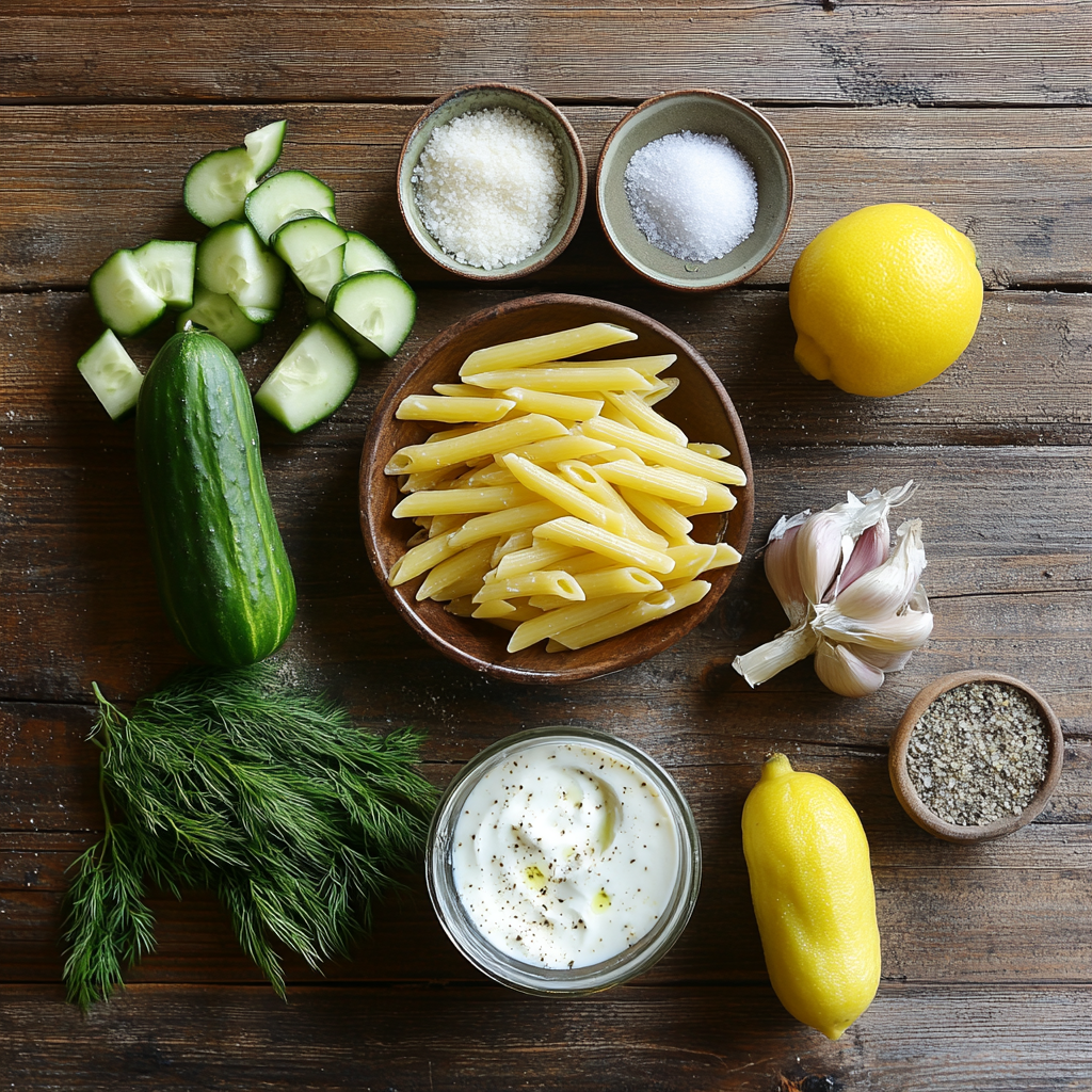 Here’s what you’ll need to make this delicious Tzatziki Pasta Salad: