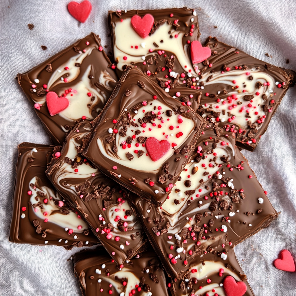 Valentine’s Day Bark is a delightful no-bake chocolate treat that elegantly combines rich dark chocolate with sweet white chocolate, topped with vibrant sprinkles, crunchy nuts, and chewy dried fruits. This easy-to-make confection is perfect for sharing with loved ones or indulging yourself. Its striking appearance and delicious flavors ensure it will be the highlight of any Valentine’s celebration!