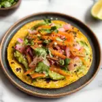 Vegetarian Tostadas with Avocado, Cheddar, and Pickled Red Onions is a flavor explosion that tickles your taste buds and makes your heart dance! Imagine crispy tostadas topped with creamy avocado, sharp cheddar, and zesty pickled red onions. It’s like a fiesta in your mouth, where every bite brings joy and a little cha-cha-cha!