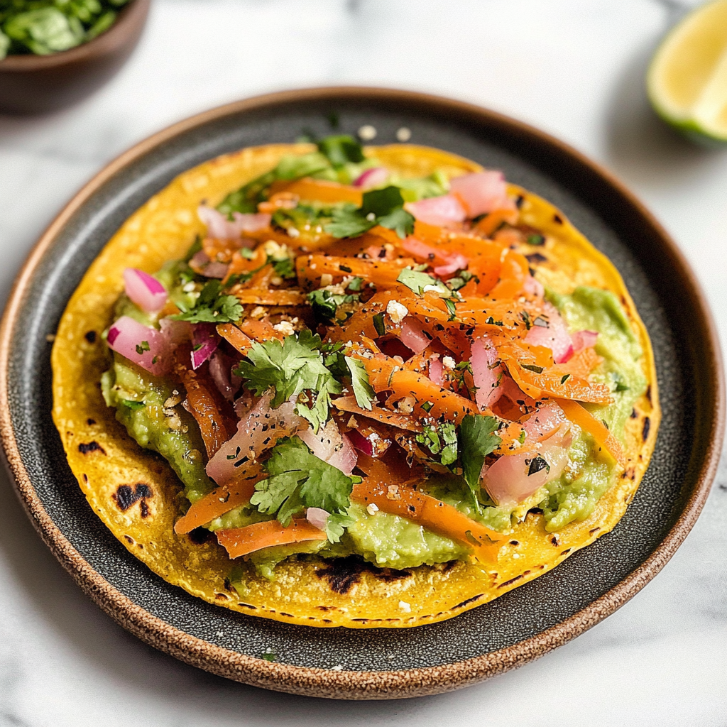 Vegetarian Tostadas with Avocado, Cheddar, and Pickled Red Onions are a delightful dish that combines crispy tostada shells topped with creamy avocado, sharp cheddar cheese, and tangy pickled red onions. This recipe is perfect for anyone seeking a vibrant and flavorful meal or snack. Each component adds unique textures and tastes, making these tostadas a favorite among vegetarians and non-vegetarians alike. Enjoy them as an appetizer or a light lunch, and feel free to customize the toppings for added flavor!